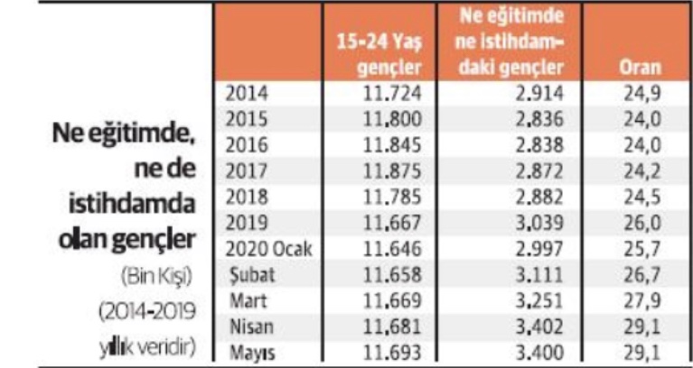 Diğer taraftan kalkınma planlandığında en önemli husus insan kaynağı yapılanması olmaktadır. Özellikle genç nüfusun nitelik kazanma becerisi diğer deyişle yetenek yönetimi hadisesi gelişmiş ülkeler işgücü tarafında iş alanlarına yönelik doğru planlamayla çok hızlı yol alabilmektedirler. Sizlerle paylaştığım tabloda özellikle genç nüfus içerisinde eğitimde ve istihdamda yer almayan nüfusun aslında bizim için ne kadar önemli olduğunu vurgulamak istiyorum. Aslında bizlerin işsizlikten ziyade MESLEKSİZLİK kavramına odaklanmamız gerektiğinin altını çizmek istiyorum.