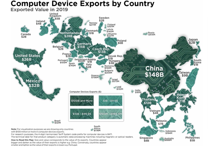 Örnek olarak sizinle paylaştığım tabloda ülkelerin bilgisayar malzemeleri ihracat rakamlarını görebilirsiniz. Katma değerli üretim alanlarını konuştuğumuzda teknolojik ürünlerin her zaman birinci sırada olduğunu düşündüğümüzde ihracat avantajına dönüştürebileceğimiz örnek bir alan olarak karşımıza çıkmaktadır. Tabi ki sadece bu alan örnektir. Bunun dışında bizlerin planlayabileceği yüzlerce ürün mevcutta bulunmaktadır.