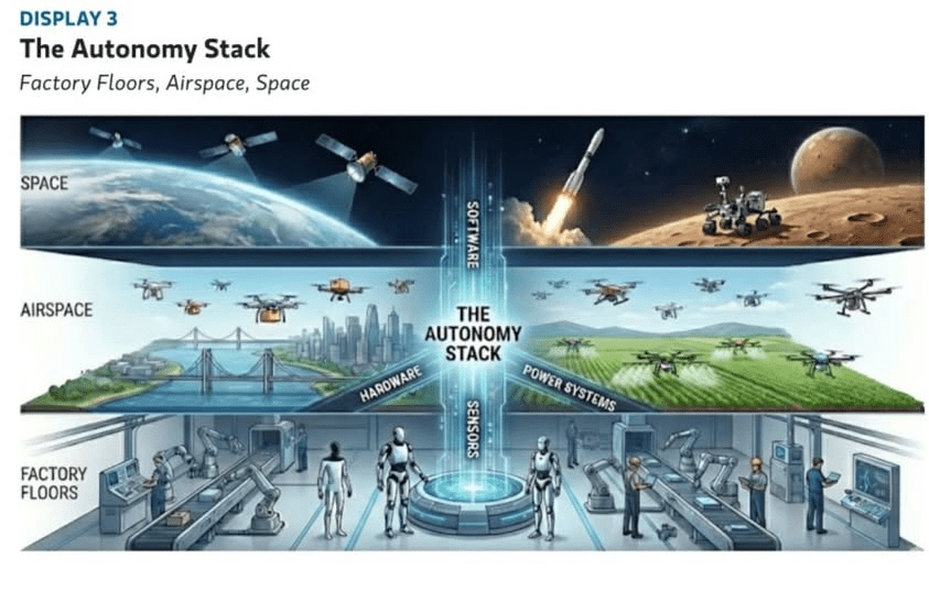 Morgan Stanley 2026 makro önceliklerle ilgili incelediğim raporunda bu fotograf önümüzdeki yılları çok güzel özetliyor. Fabrikalardan uzaya başlıklı fotografta otomasyon teknolojilerinin ne kadar hayatımızda yer alacağının özet fotografı diyebilirim.