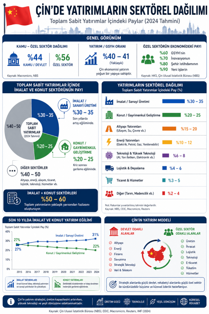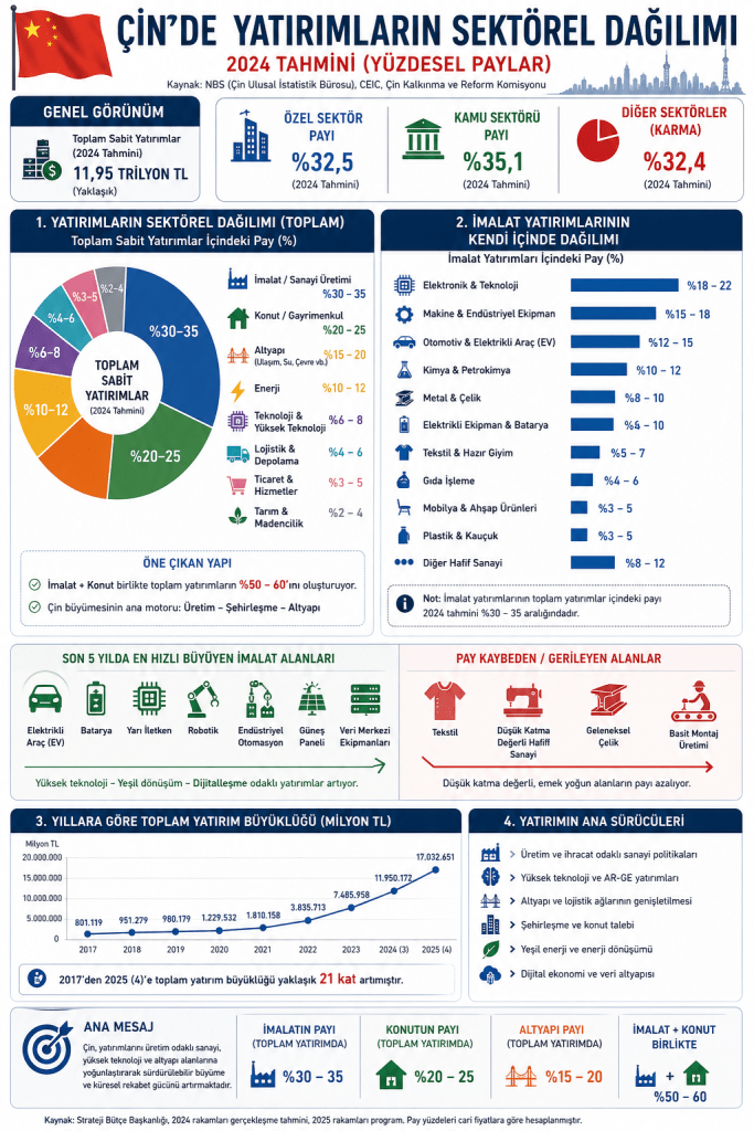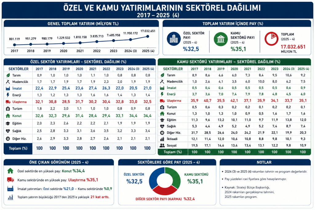Ülke ve şehirlerin kalkınma modellemerinde sektörel dağılımlar önemlidir. Sürdürebilir kalkınma için en önemli hadise imalat sektörünün toplam yatırımlarda aslan payını alıyor olması gerekmektedir. Genel görüşte inşaat sektörünün ülkeleri kalkındırdığıdır. Fakat buradaki inşaat sektörünün ana kalemi alt yapı enerji gibi yatırımlardır. Bunun sonrasında da imalat sektörüne hizmet edecek konut ve konut sektörünün yarattığı hareketlilik bütünüdür.